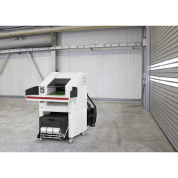 Niezwykle wydajna niszczarka dokumentów z podajnikiem taśmowym, w połączeniu z prasą belującą (FA 500.3 i KP 88.1). Pobór materiału do zniszczenia z obszernego blatu podawczego za pośrednictwem elektrycznie napędzanego podajnika taśmowego. Wielofunkcyjna klawiatura sterująca z funkcją pracy ciągłej i cofania, a także funkcją automatycznego cofania w przypadku wykrycia zacięcia papieru. Zintegrowana, automatyczna olejarka zespołu tnącego. Awaryjna szyna zatrzymująca z przodu blatu podawczego zwiększająca bezpieczeństwo użytkownika. Fotokomórka pozwalająca automatycznie sterować procesem zgniatania. Jednoczesne niszczenie i zgniatanie. Belownica z otworem podawczym/klapą rewizyjną na dokumenty niewymagające zniszczenia i karton. Ręczne potrójne wiązanie beli ciągłą taśmą poliestrową. W standardzie podajnik worków plastikowych.